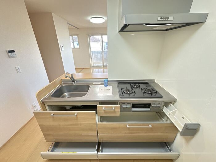 ★うれしい、システムキッチン、ガスコンロ付です。