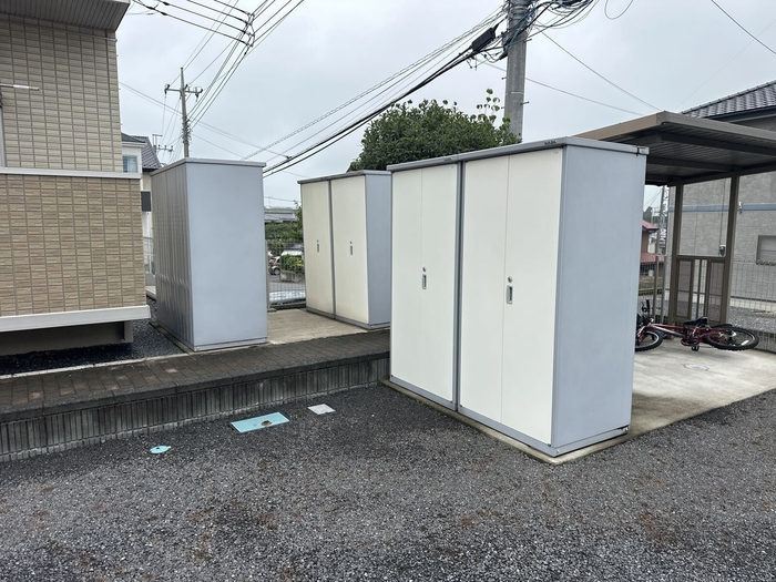 ★外部物置があるので、外で使用するものを保管できます。