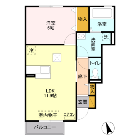 1LDK 46.09m2 |